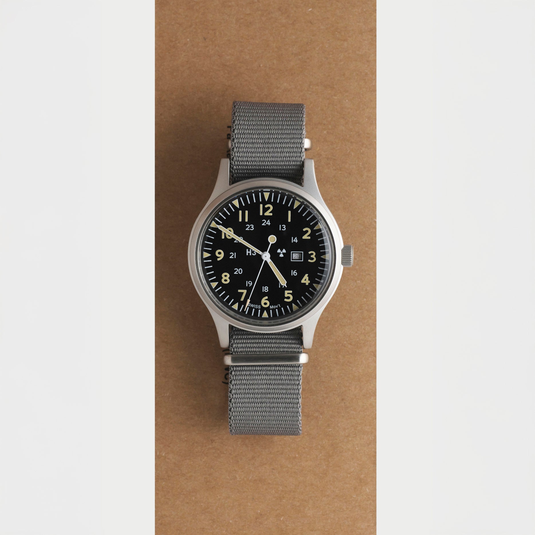 ミルスペック仕様のミリタリーウォッチをベースに現代仕様にアップデートした腕時計を提案しています。