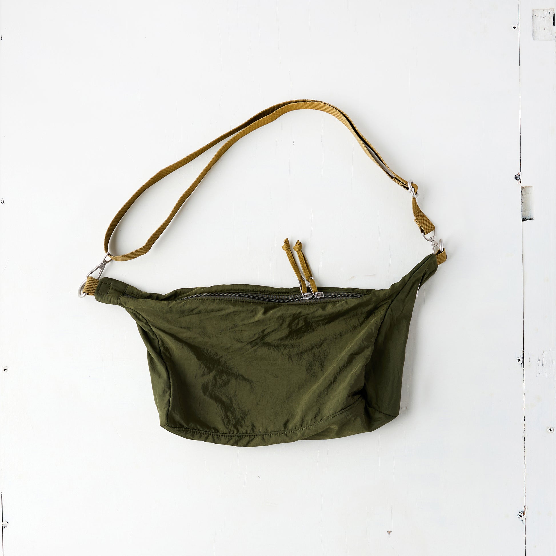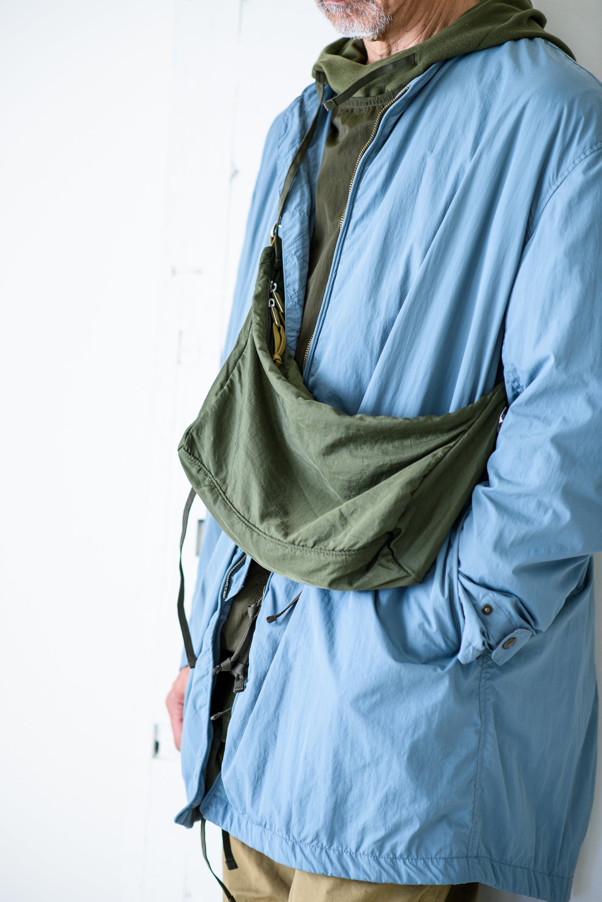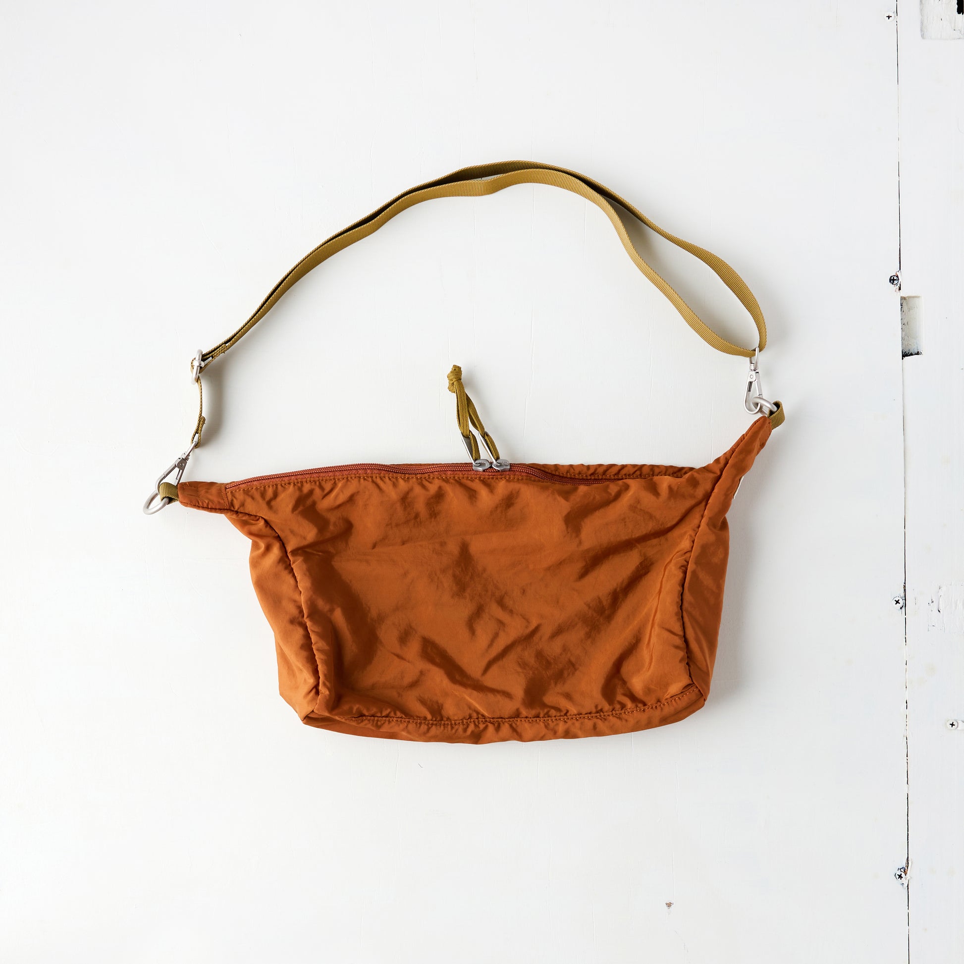 外側はナイロン、裏地はポリエステルのメッシュ素材を使用したバックシリーズです。 衣類用の素材を使用しているので、バック市場に出回らない素材感と色が特徴です。