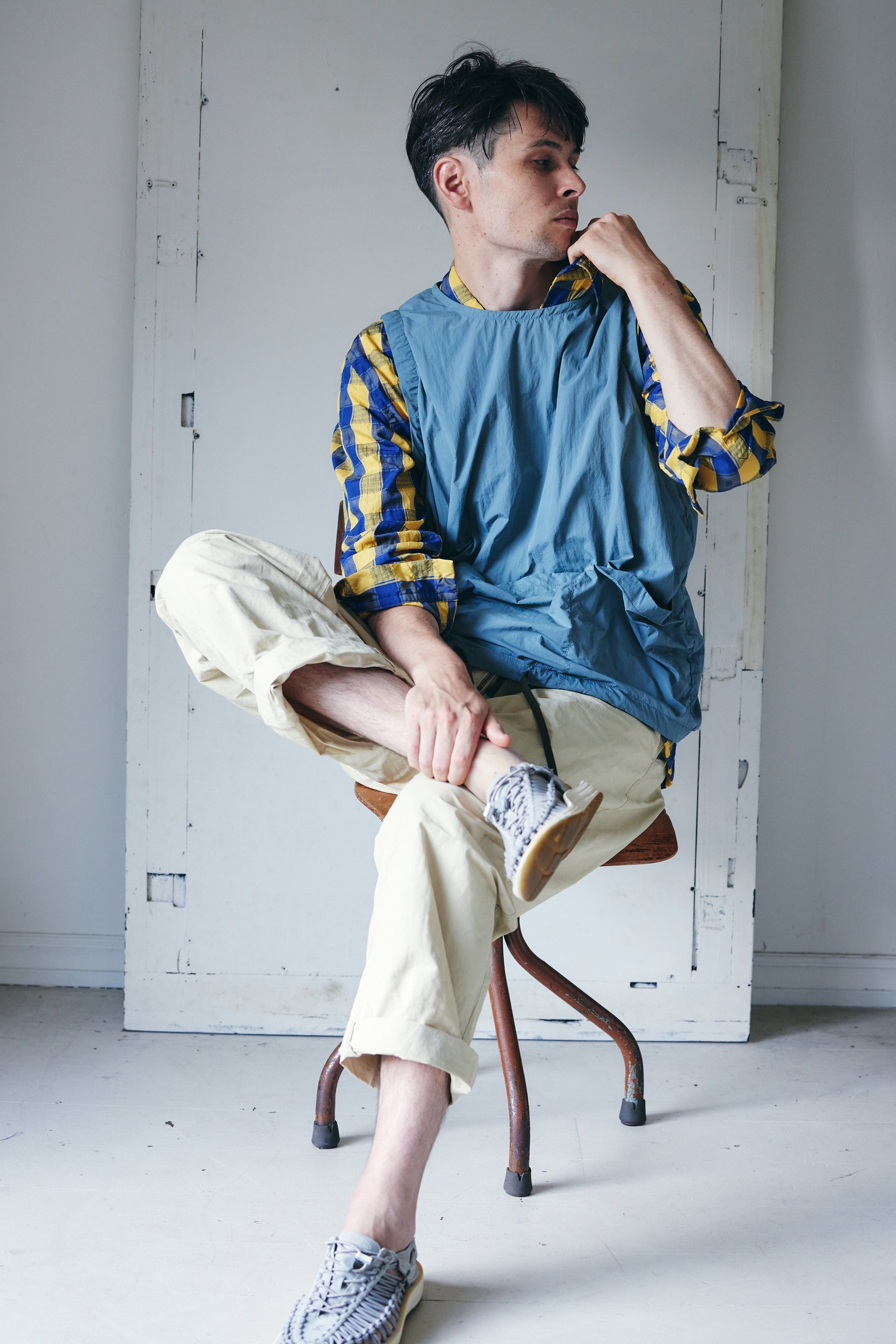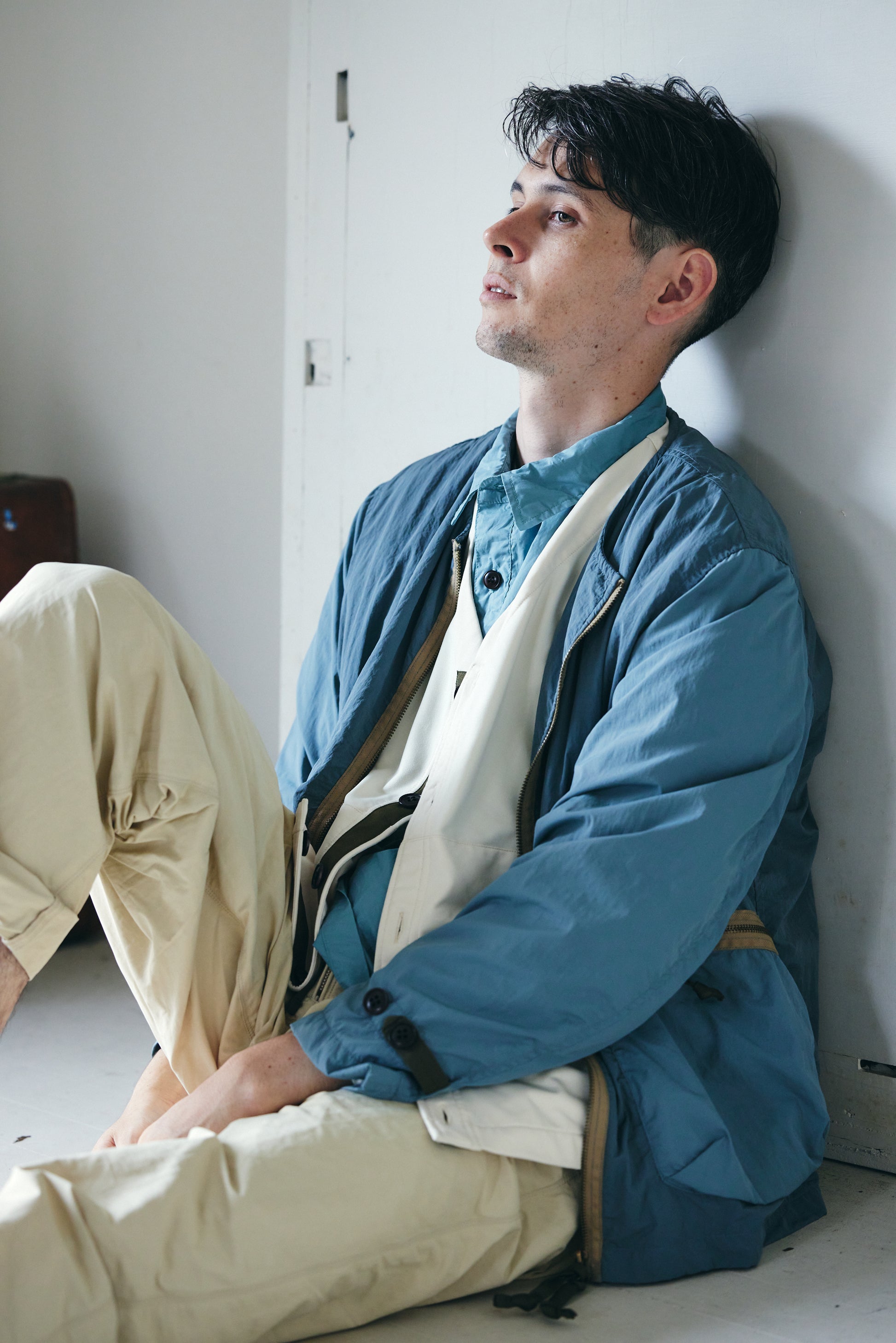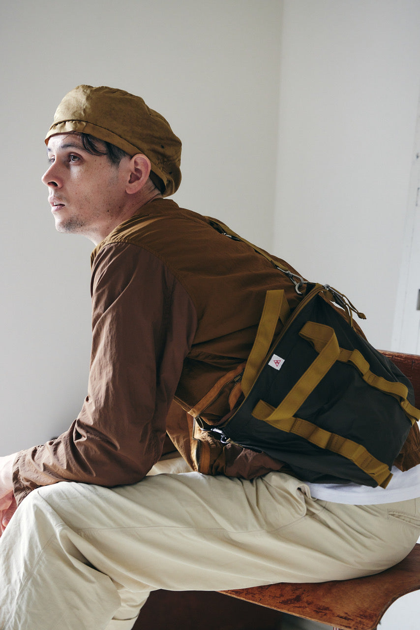 コットンナイロン素材を使用したパンツです。 洗い上がりのシワ感やパッカリング、強度のバランスは、コットン100%とは異なる表情があり、dipとして好んで採用しています。 フロントはムシ見せのジップ仕様。生地を噛まないようタコ糸を入れ、細かなトラブルを防ぐ仕様にしています。 不具合が出やすい箇所については事前に確認を重ね、縫製段階で問題が起きにくいよう配慮しました。 ウエストはストリングスで調整可能。アイテムを選ばず、コーディネートの幅がひろがるアイテムです。