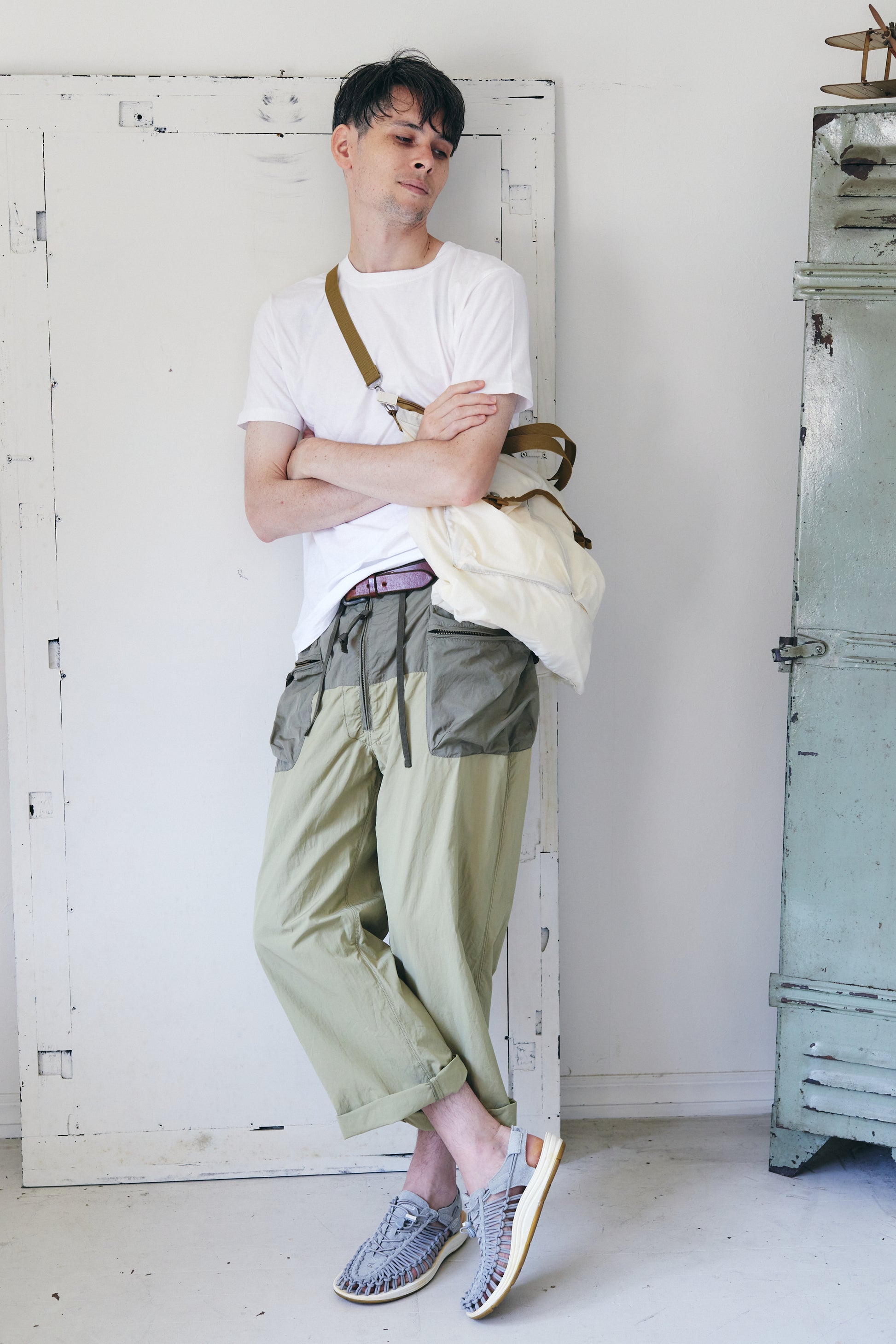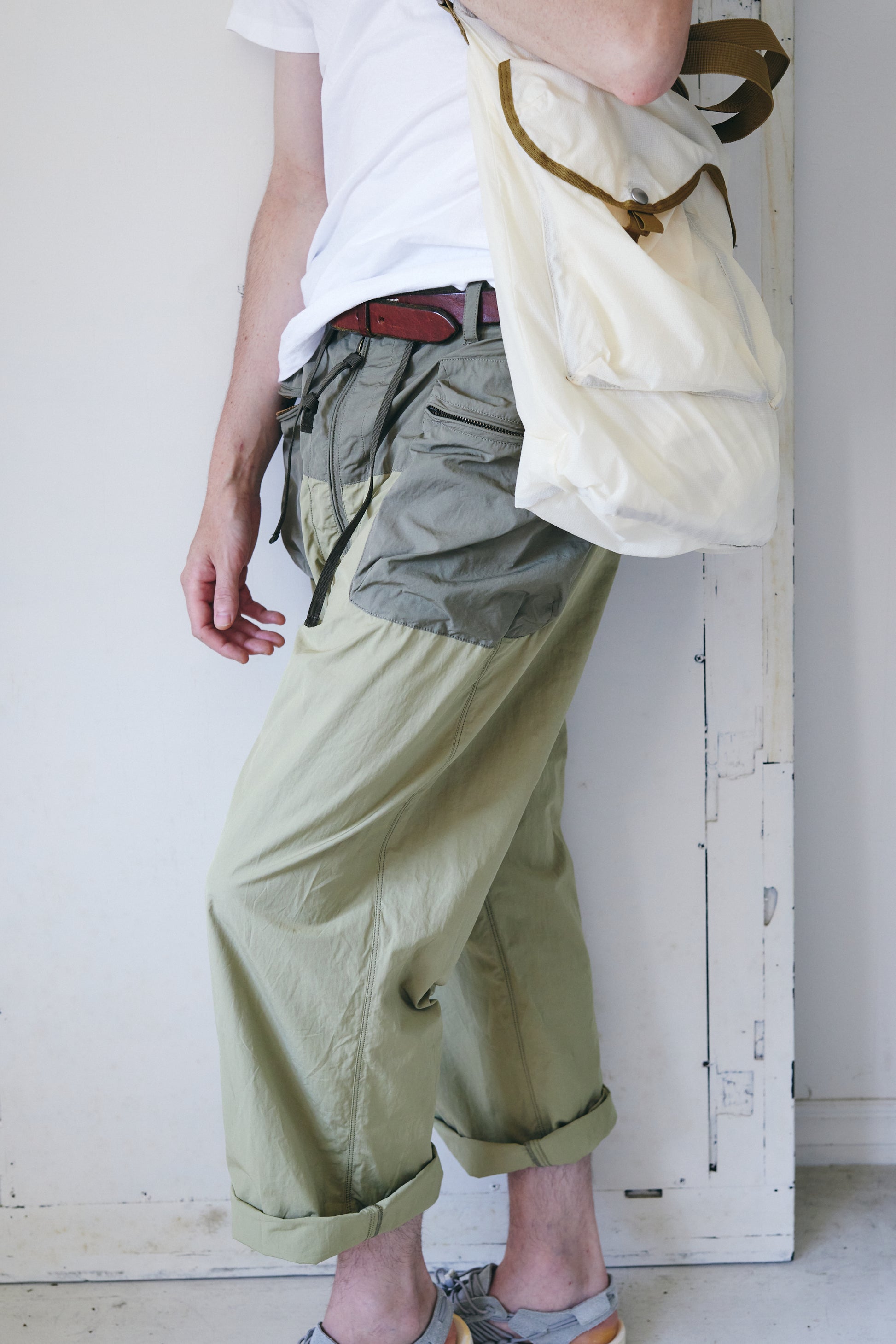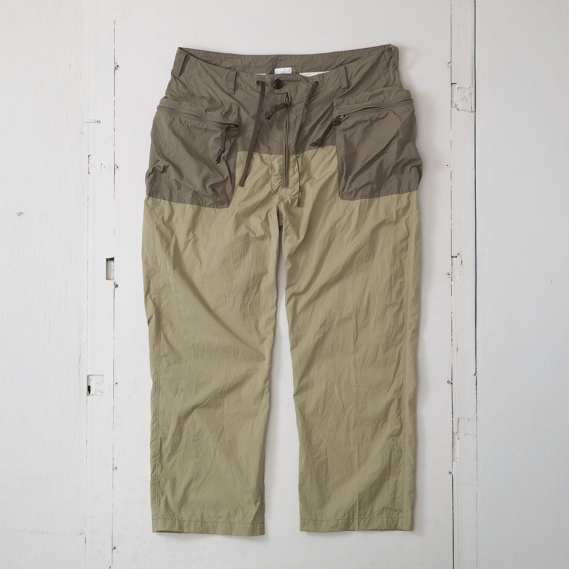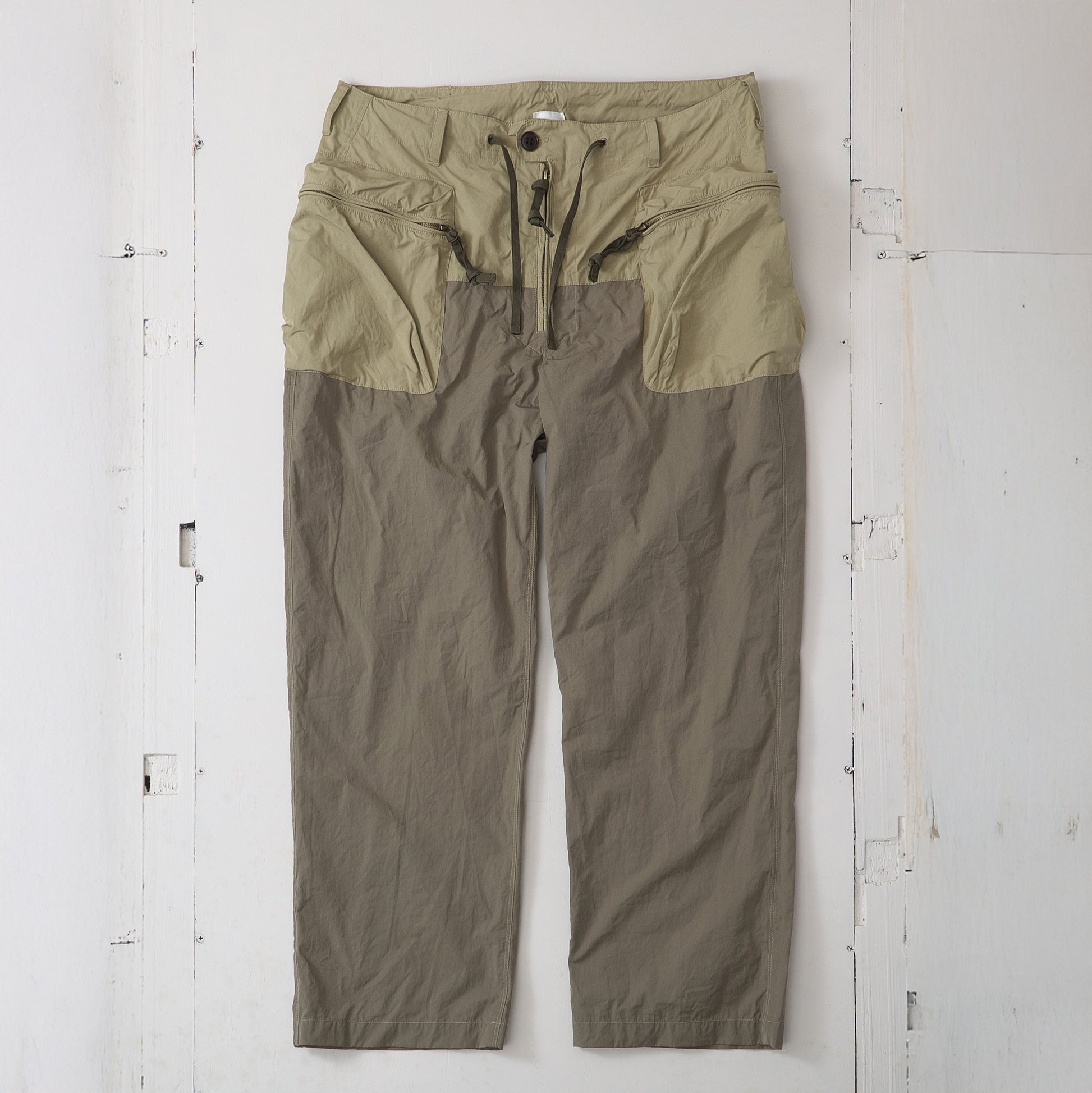 コットンナイロン素材を使用し、同素材でカラーコンビに仕上げたカーゴパンツです。