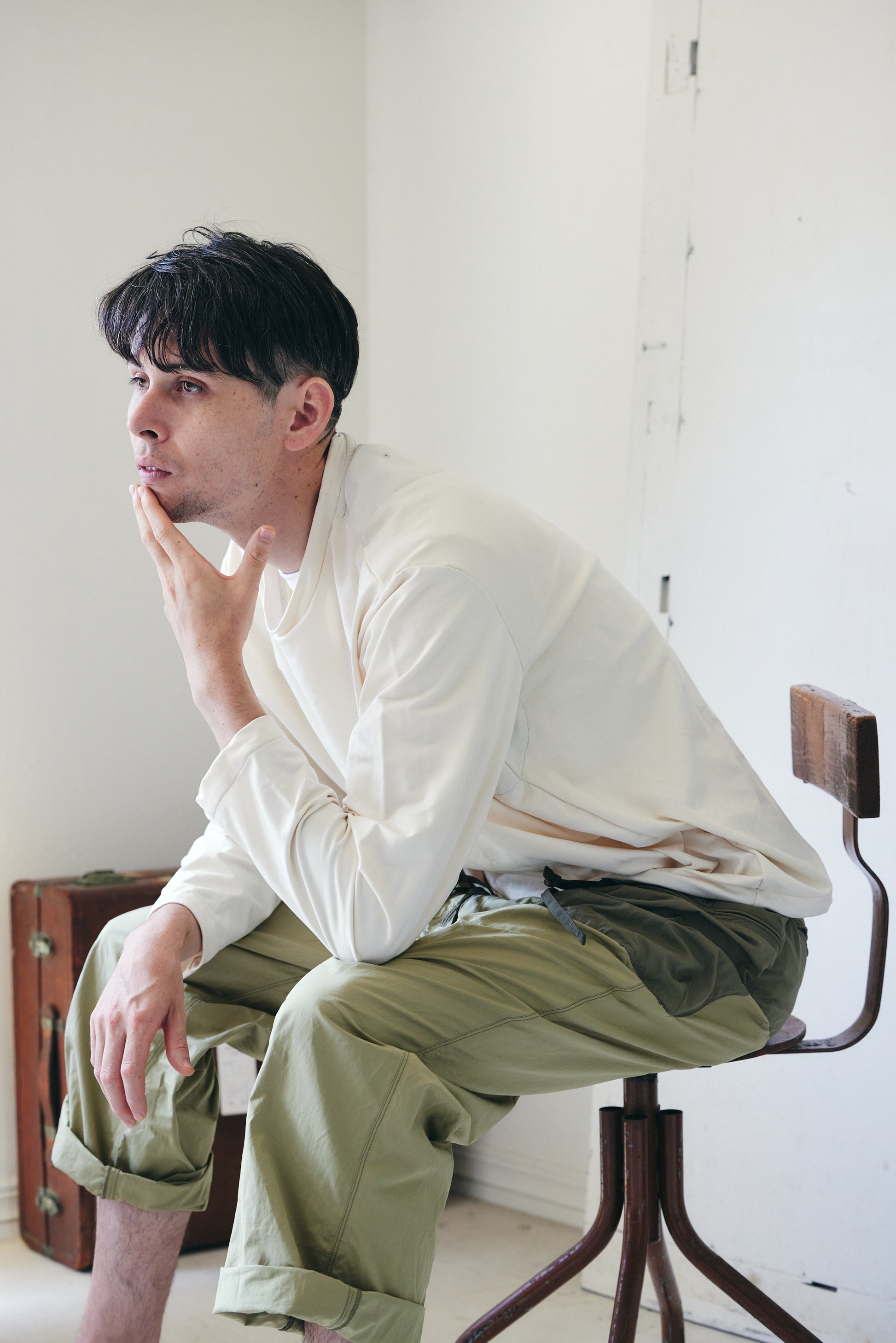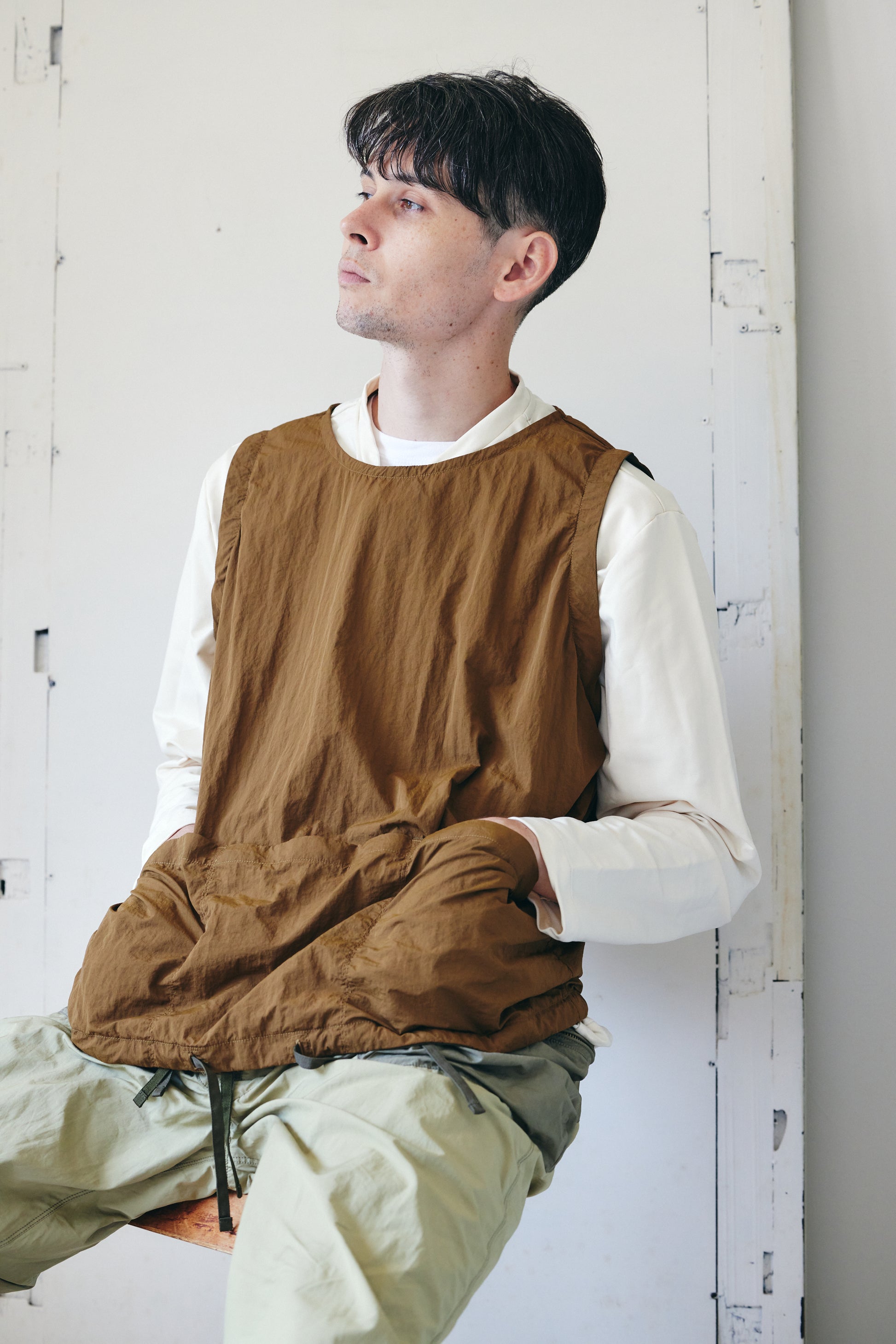 dipらしいデザインは、ラベルがなくても一目でブランド感が伝わるのが特徴。フロントはジップのムシが見える仕様で、ポケットはジップ付き・ダーツ入りの立体ポケットに。ウエストはドローコードで調整可能。シンプルなコーディネートでも自然に個性を引き立てるアイテムです。