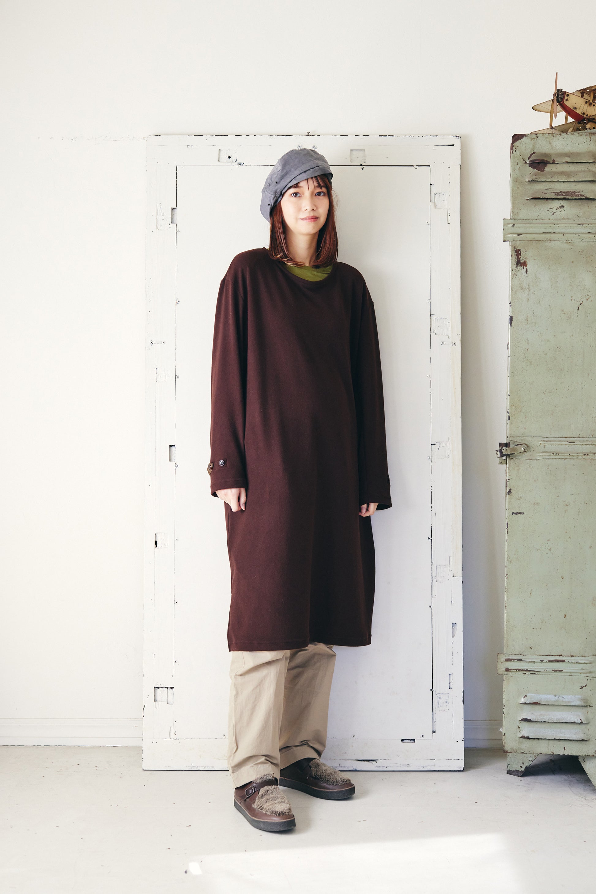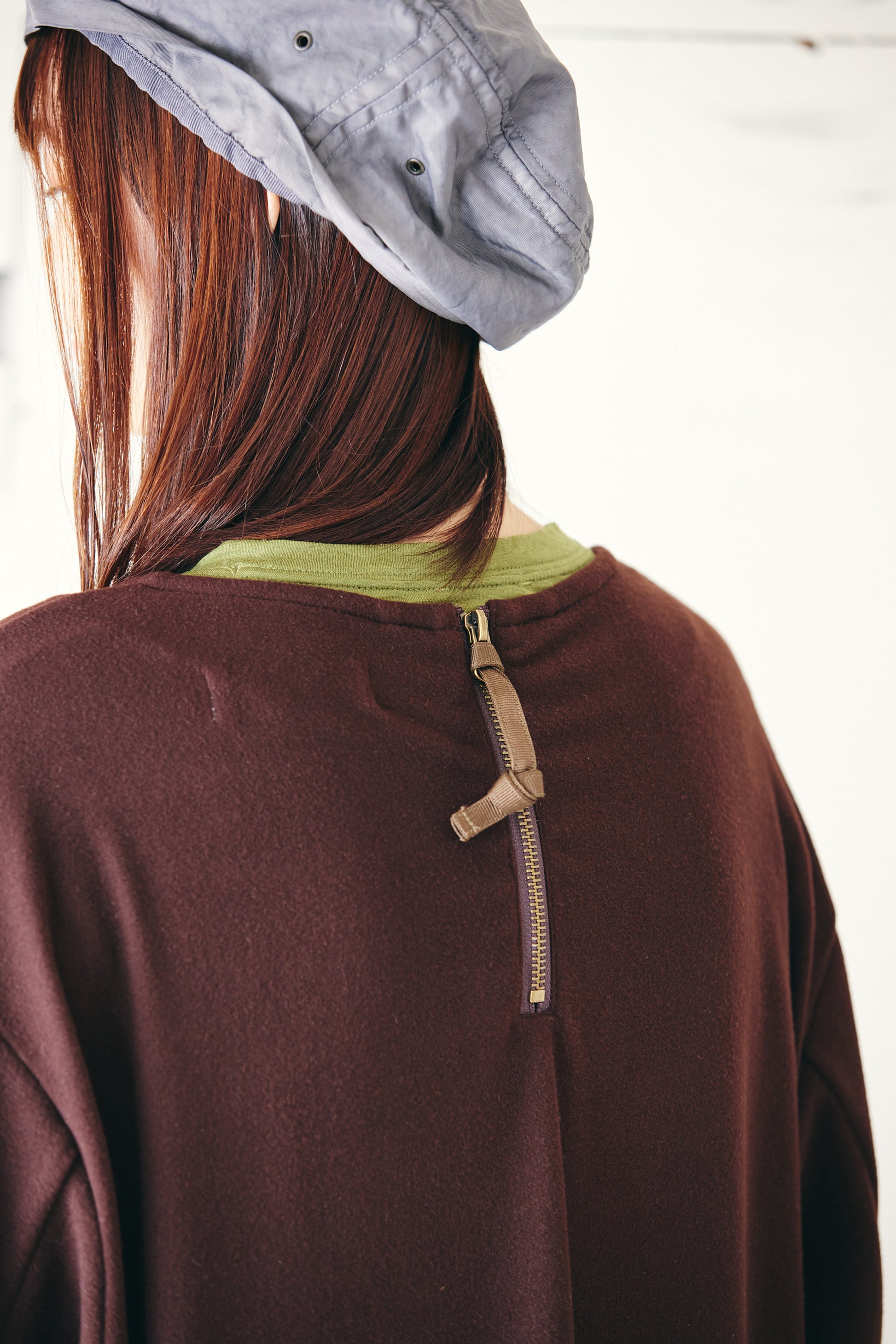 ストレッチ入りのフリー素材を使用し、布帛の縫製で仕上げたワンピースです。 普通のフリー素材とは違い、とてもスムーズでくせになる触り心地です。 うしろのジッパーがディップならではのデザインアクセントに。