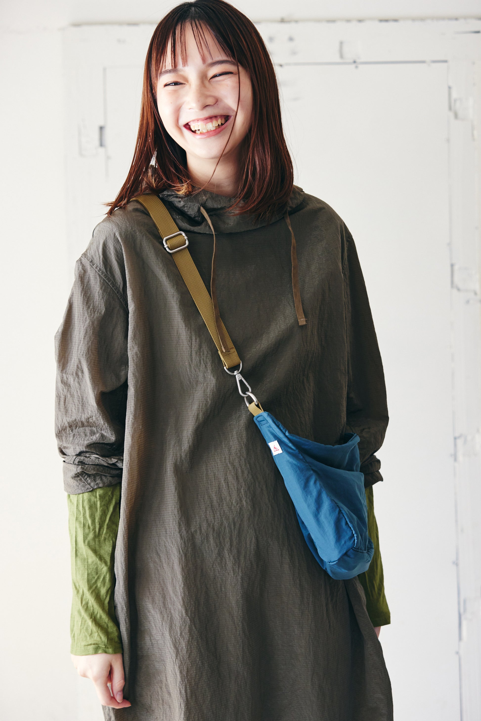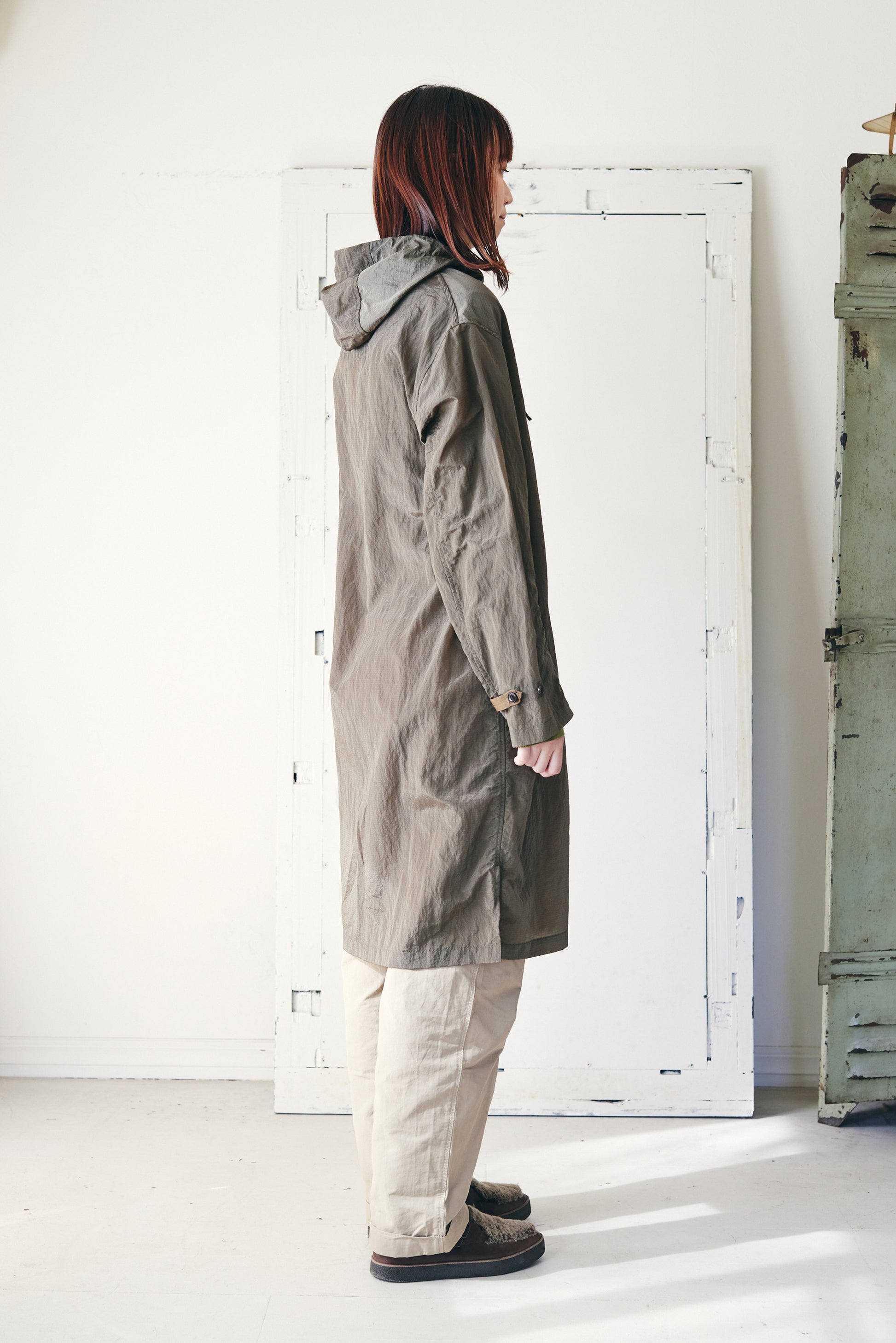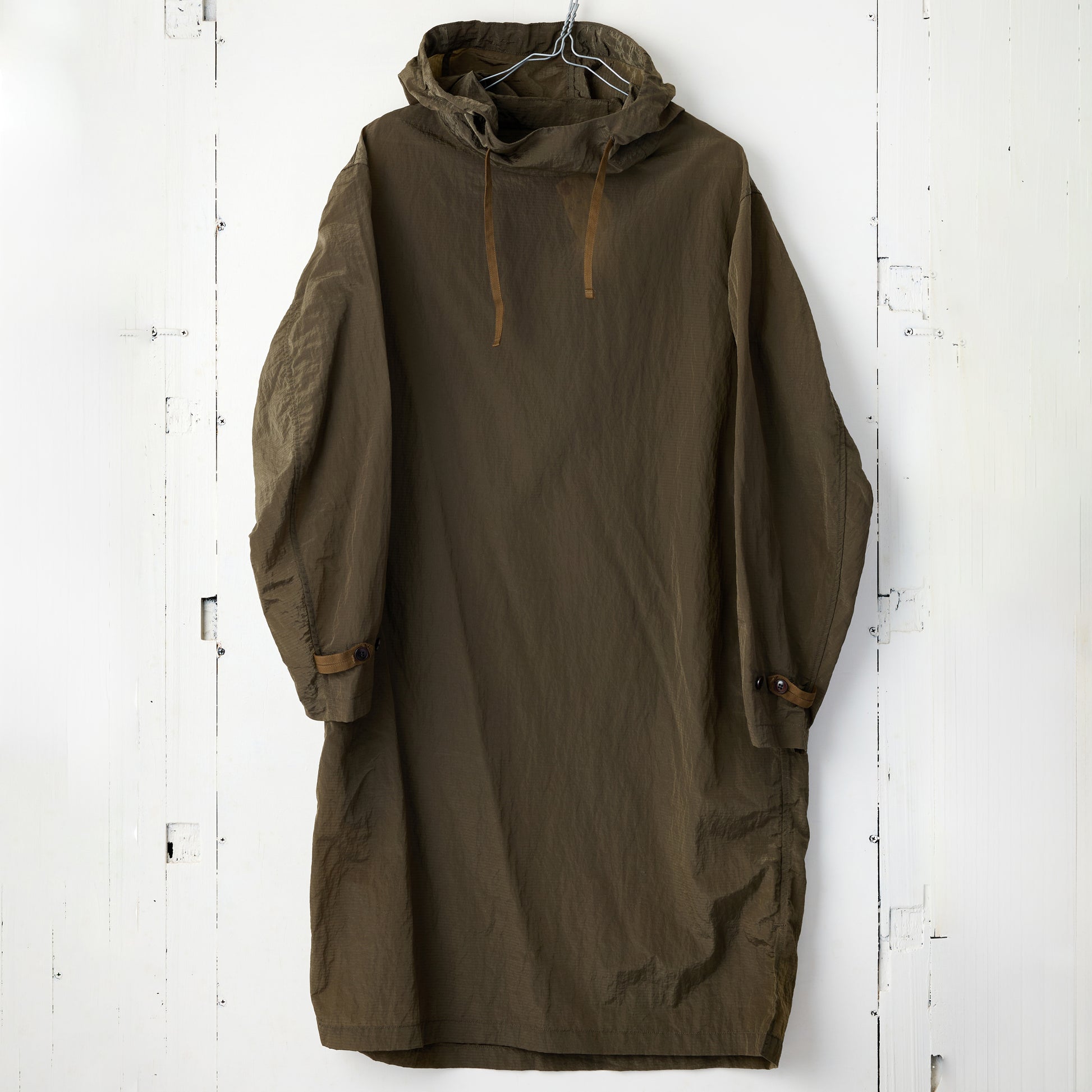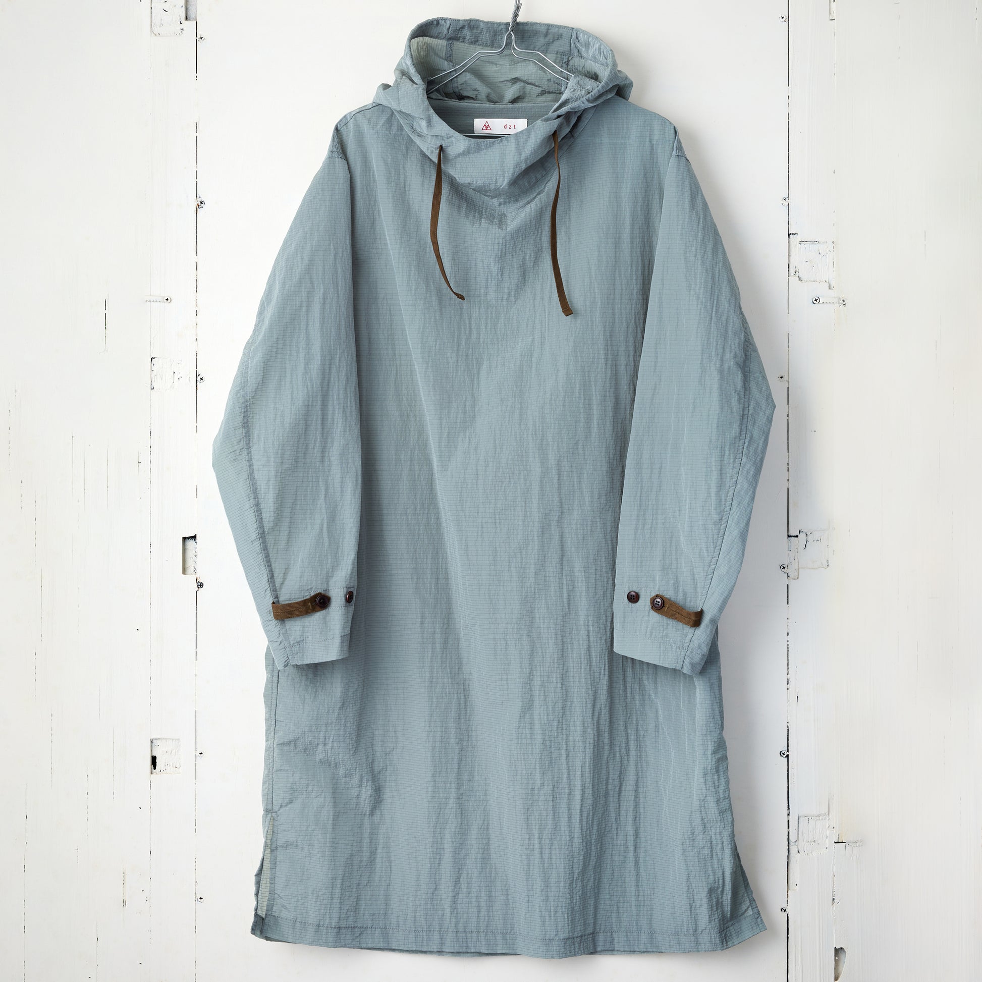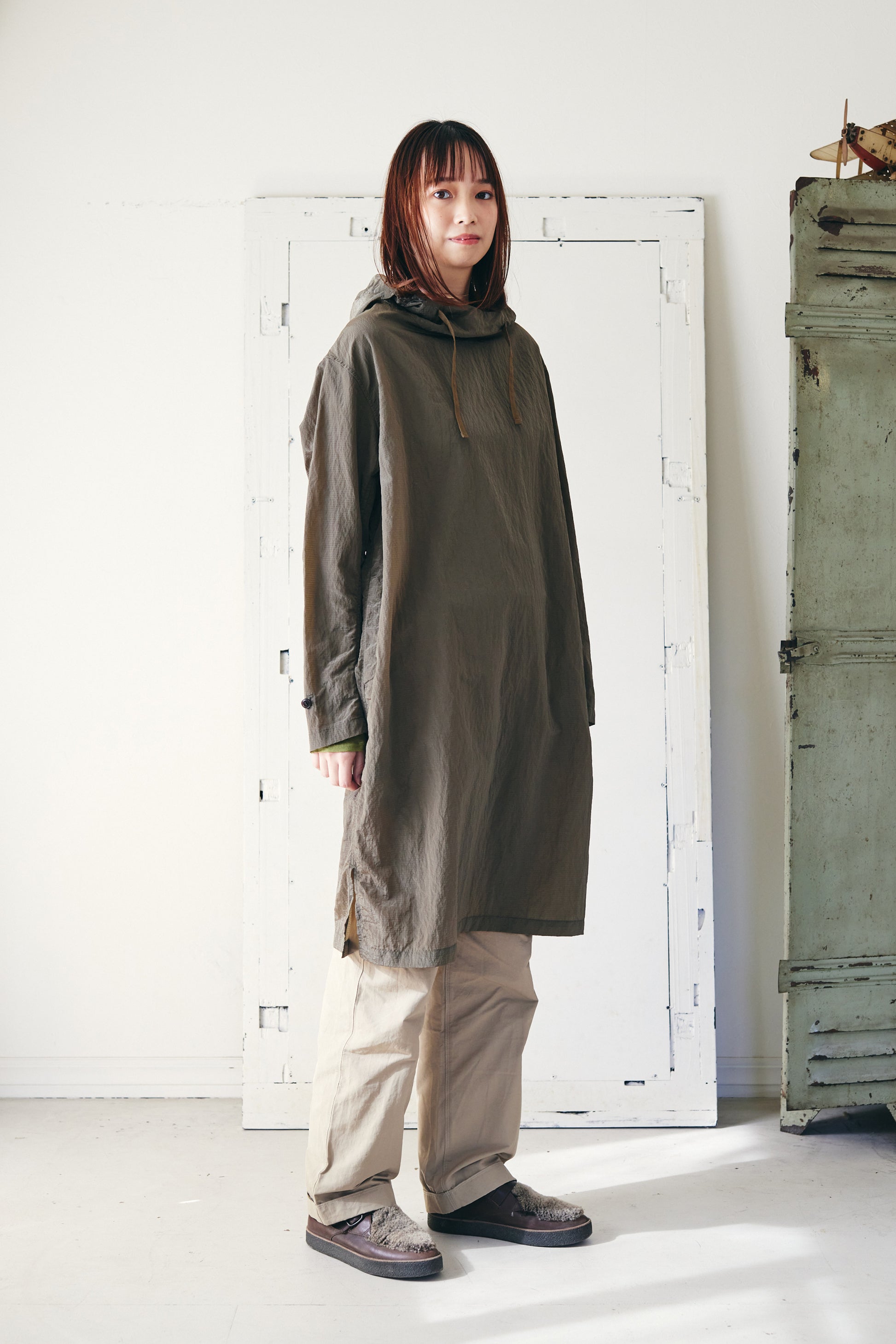 フード付きパーカーをワンピースにアレンジしました。 表情がある薄手のナイロンを使用しています。 静電気が気になる場合は静電気防止スプレーのご使用をお勧めします。