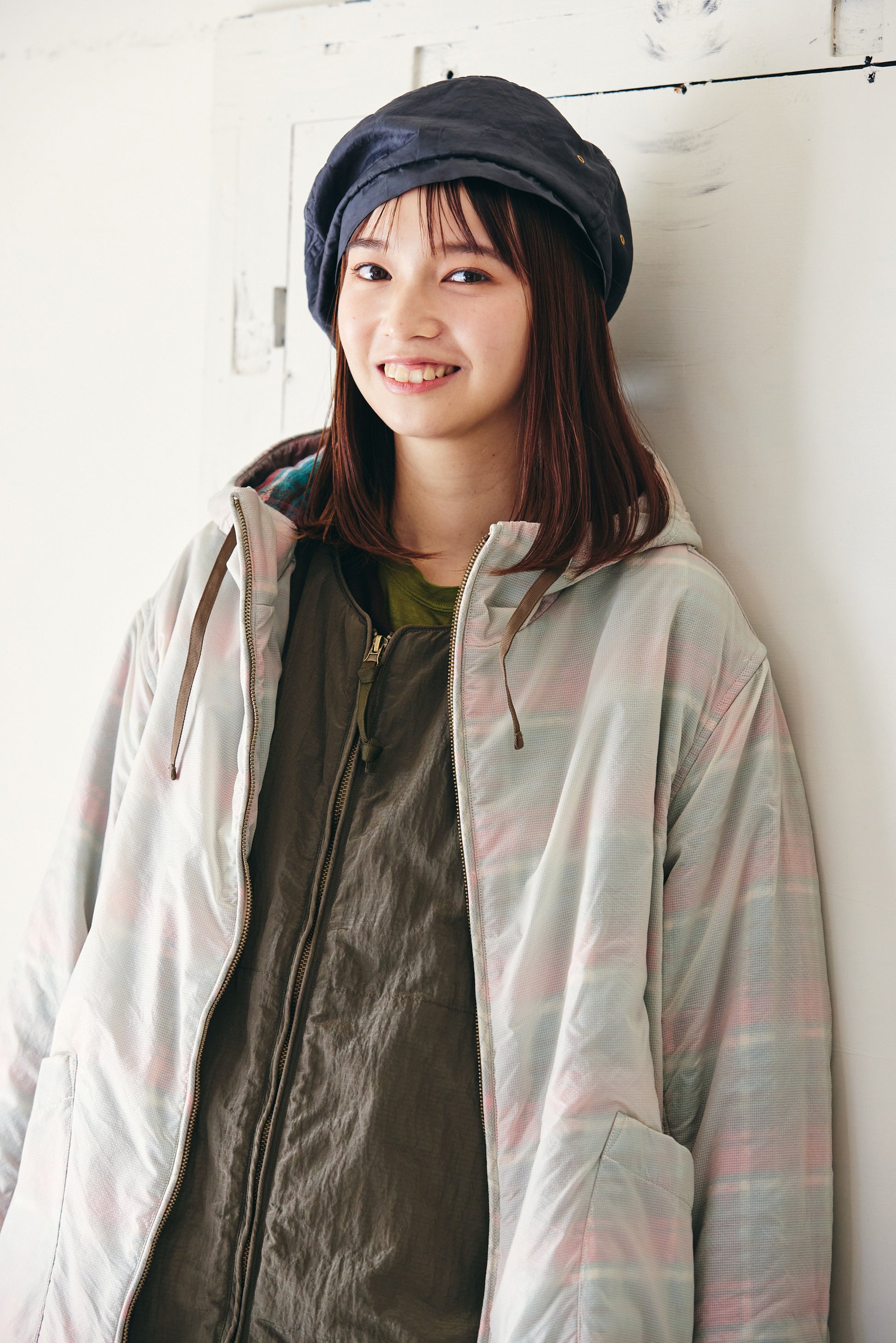 ダークな色のアウターにポイントで明るい色のコーデイネートも新鮮です。 裏のフリースは少し仕上げています。
