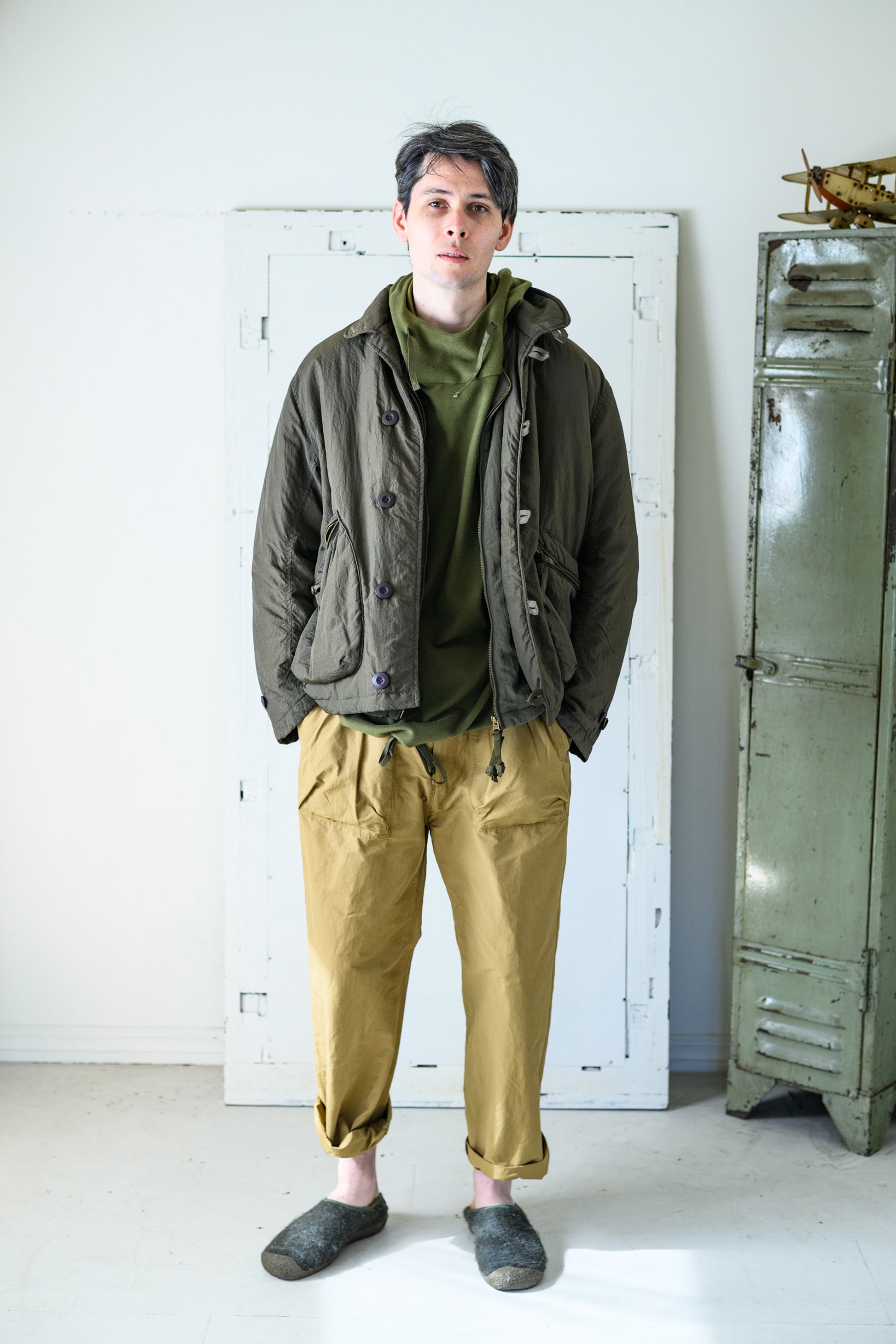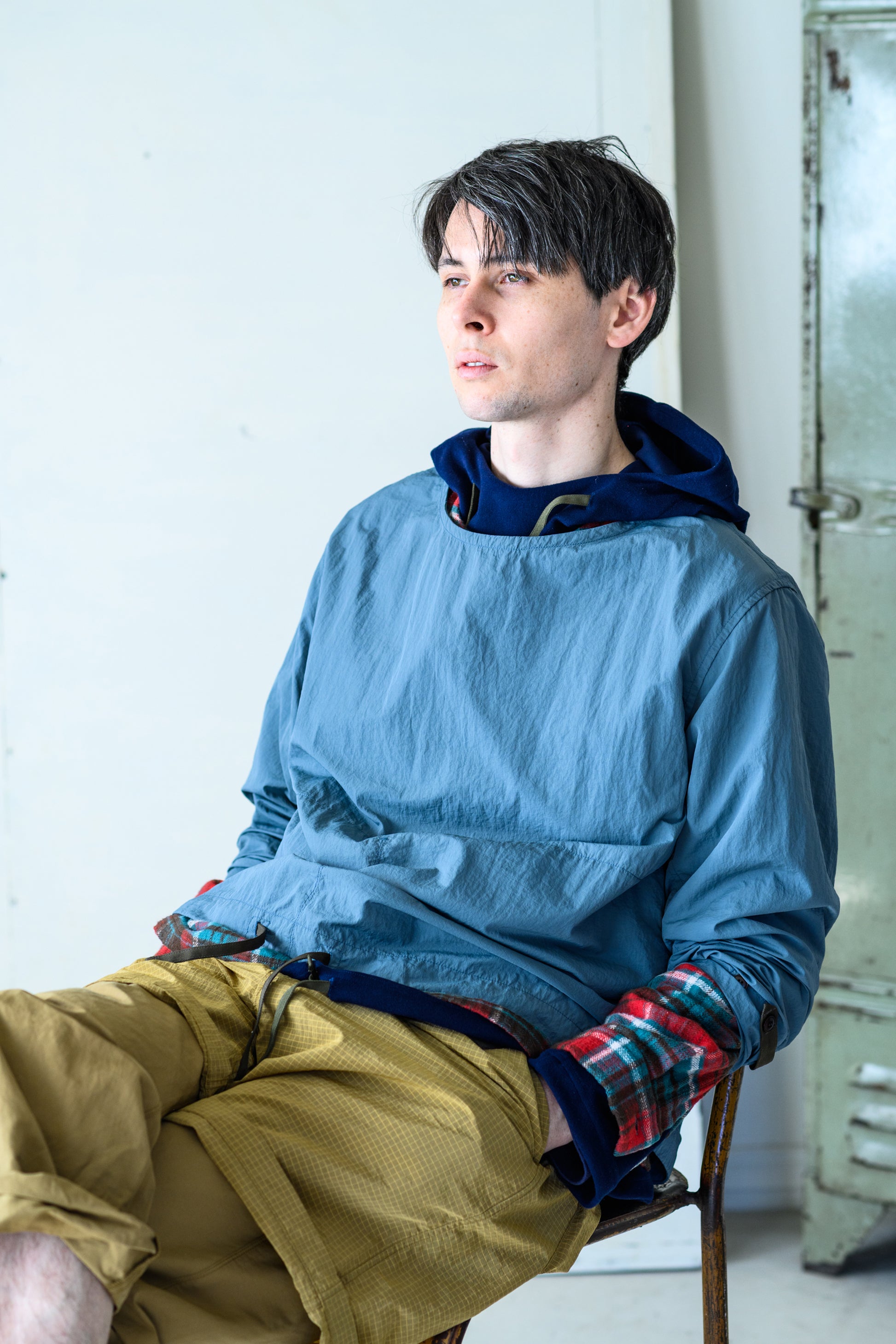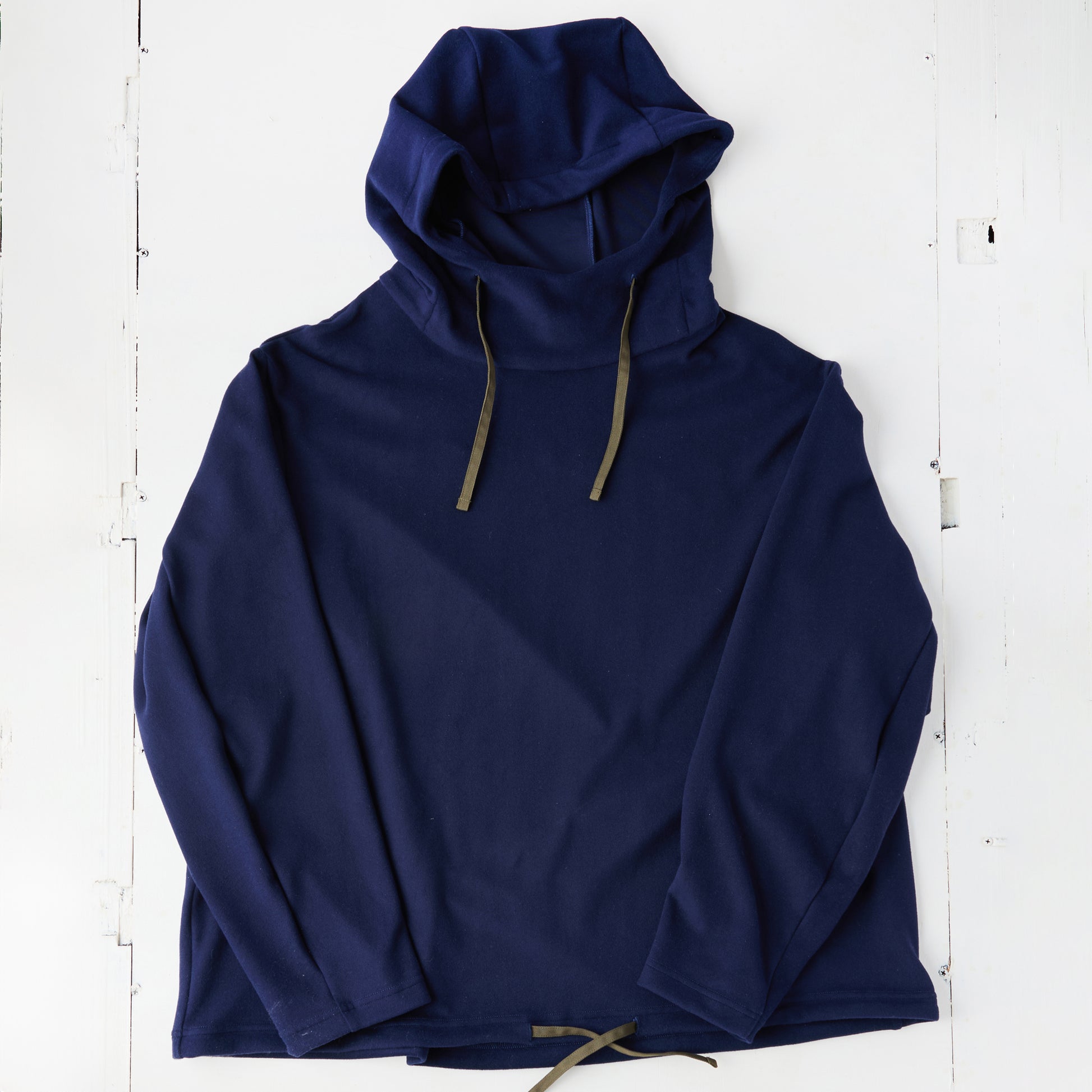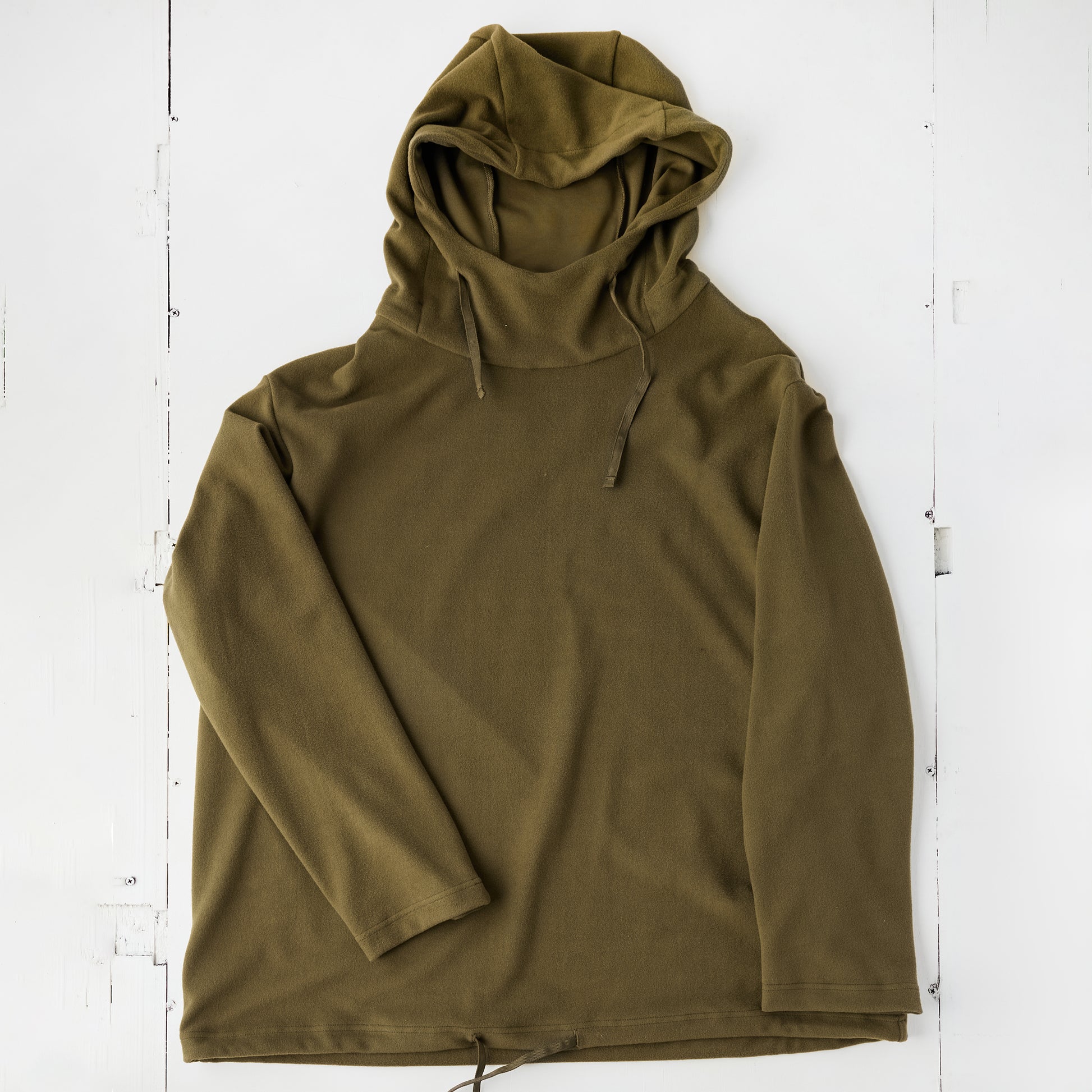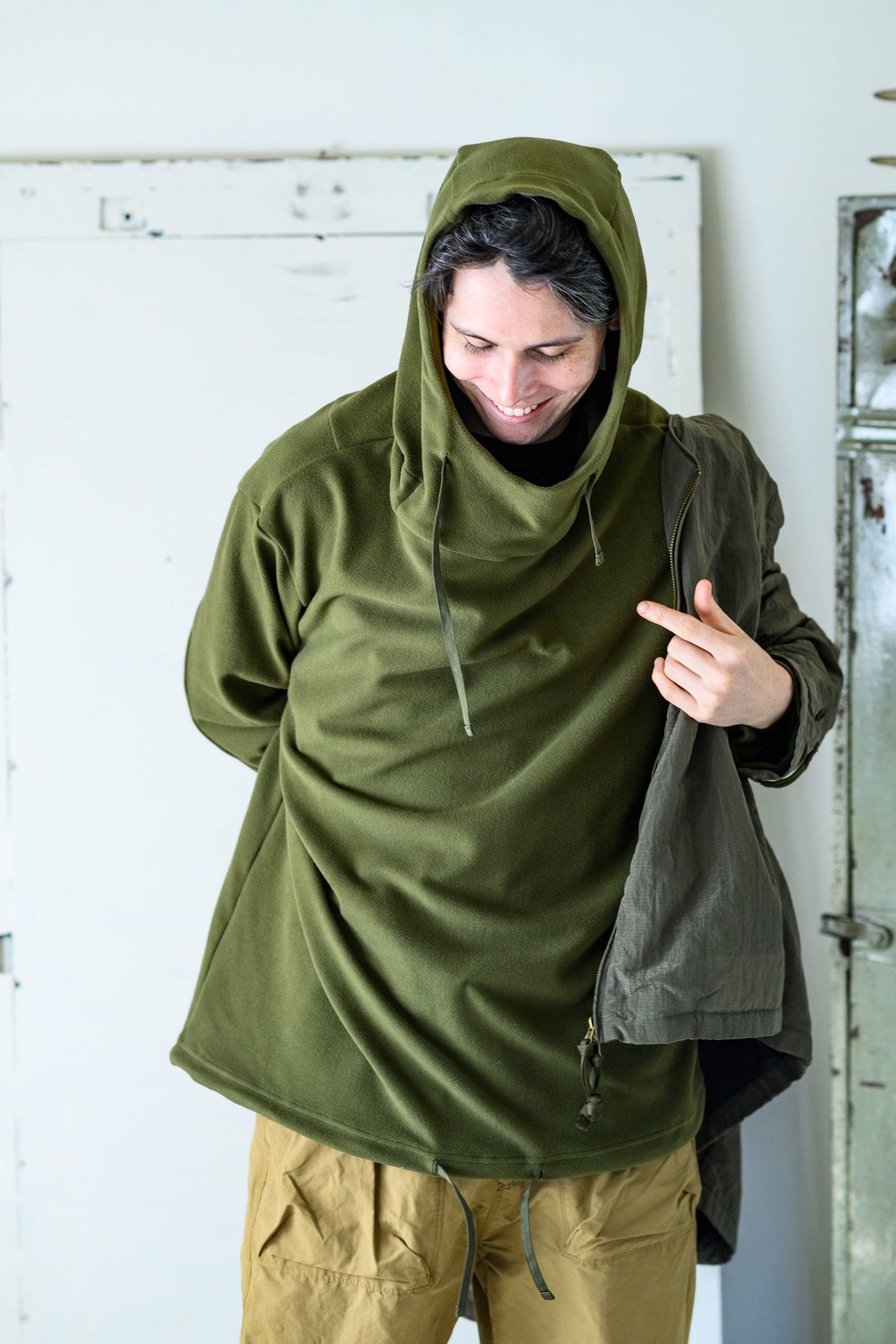 ストレッチ入りのフリース素材を使用し、布帛の縫製で仕上げたプルオーバーです。普通のフリー素材とは違い、とてもスムーズでくせになる触り心地です。