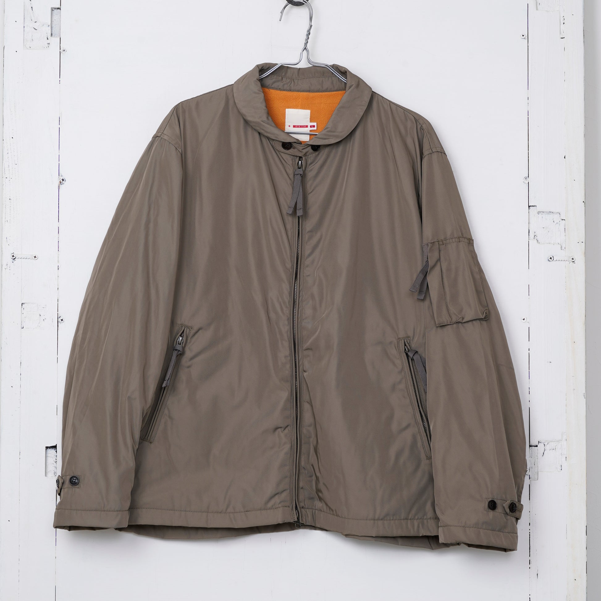 フライトジャケット(MA-1)と、エアホース用ジャンプスーツの襟デザインを融合させたブルゾンです。