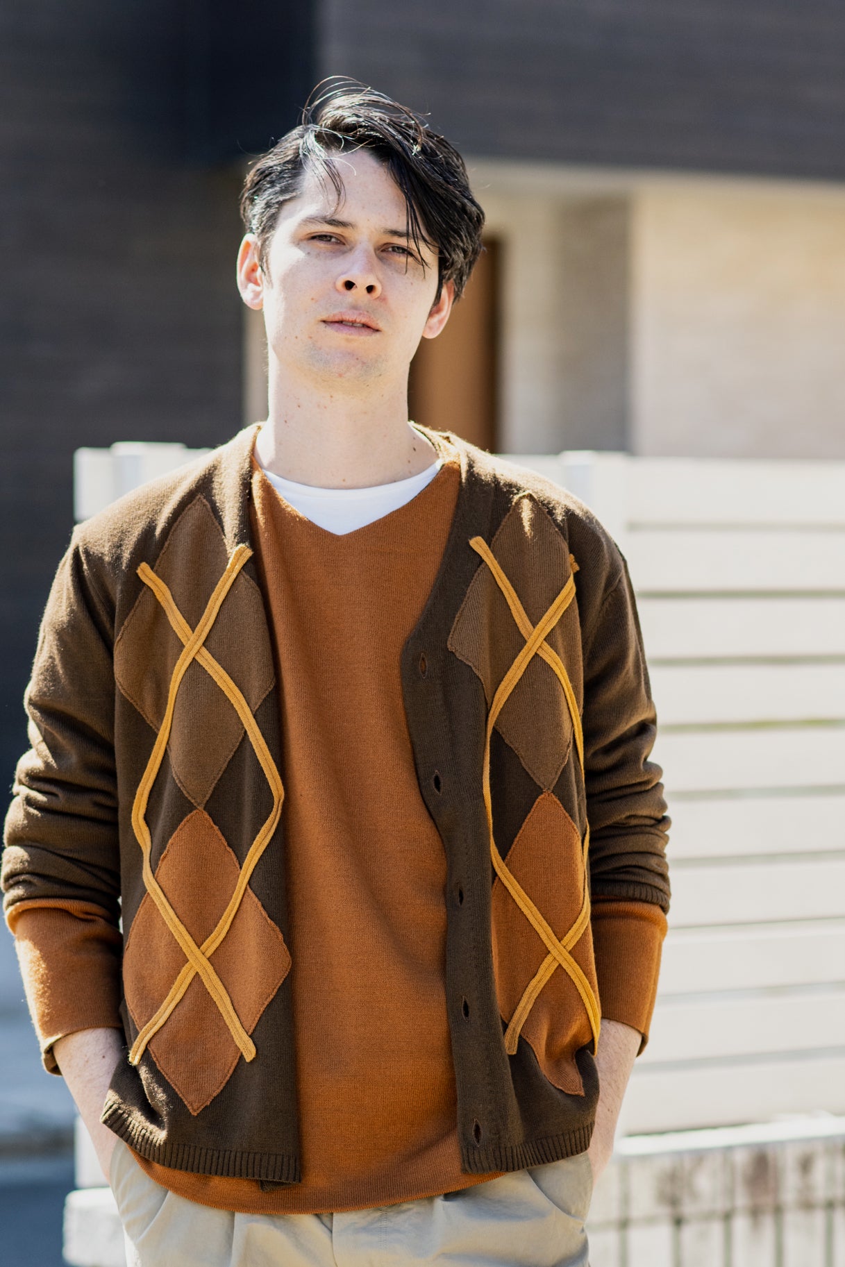 普通のアーガイルでは面白みがないので、同素材の編み地とテープを作り叩きつけてみました。セーターに凹凸感がでて他社との違いをアピールしました。ネットに入れて家庭用洗濯機で洗えます。製品洗いをしているので、ほぼ縮みません。洗濯後は、平干してください。ハンガーで干すと水分を含んだ重みで肩に跡がつくので、ハンガーで干す場合は、二つ折りにして干してください。